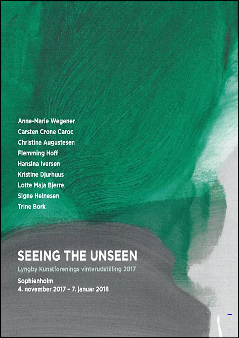 Ni billedkunstnere præsenterer på udstillingen ”Seeing the Unseen” værker, hvor det visuelle og personlige udtryk undersøges gennem farve, flade og form. Med fokus på materialet som fælles omdrejningspunkt skaber de hver på deres måde værker, der opfordrer til nærvær og fordybelse i nuet.